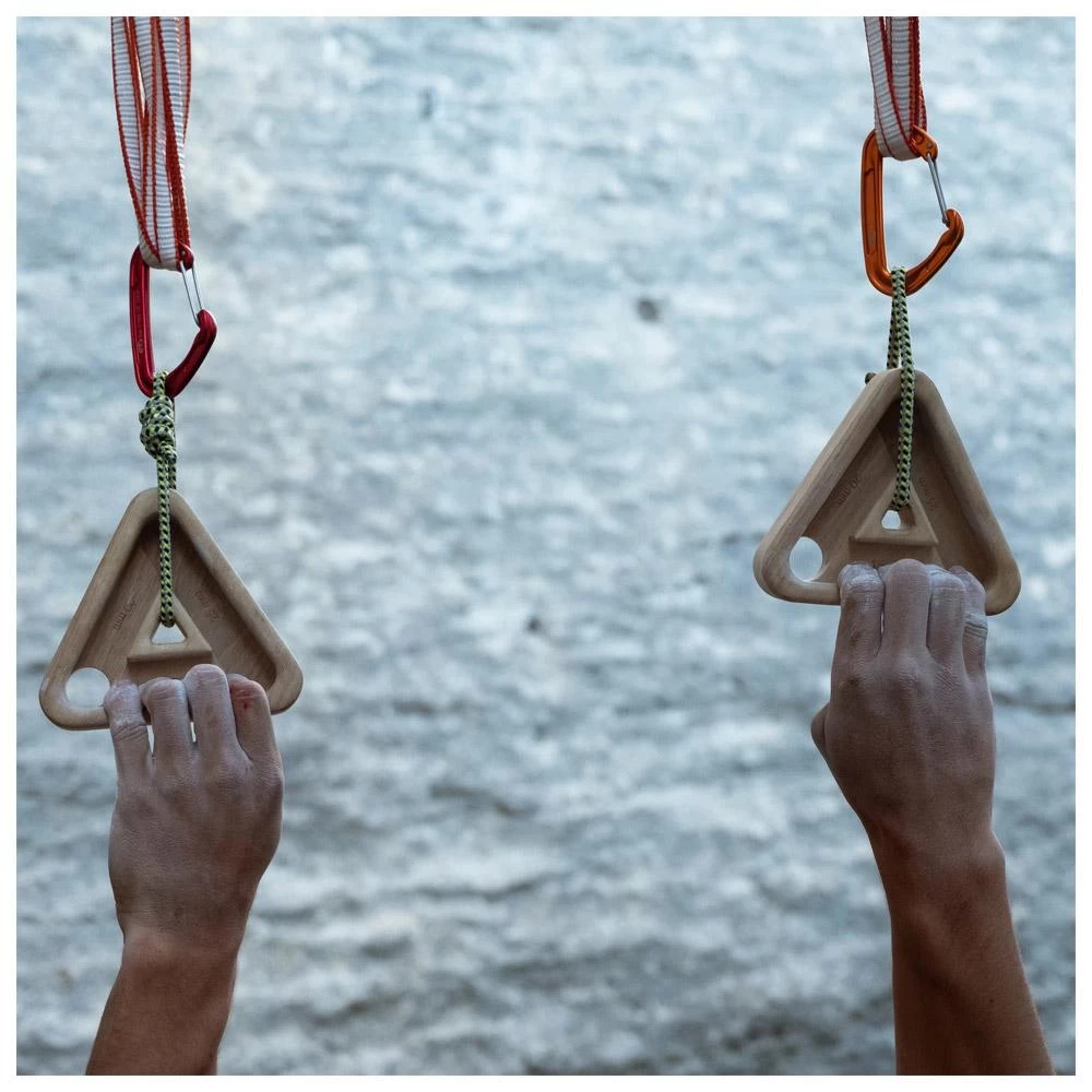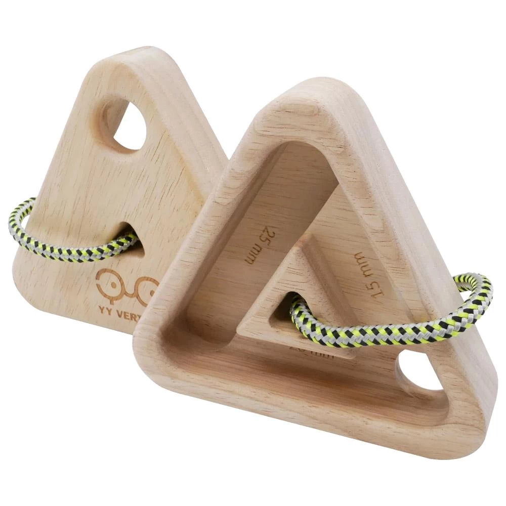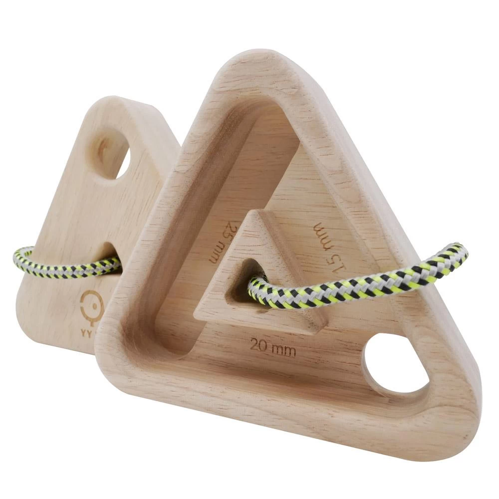 El Tri谩ngulo Vertical YY es una ayuda para el entrenamiento y el calentamiento de la escalada, fabricada con madera de caucho reciclada. Tiene una forma triangular y un dise帽o que ofrece cuatro tipos de sujeci贸n diferentes (25, 20 y 15 mm, mono). Dise帽ado para ser utilizado en suspensi贸n, puede utilizarse a 360掳. Le permitir谩 realizar ejercicios de tracci贸n o de suspensi贸n, permiti茅ndole trabajar tanto las estructuras activas como las pasivas de sus dedos, brazos y espalda.