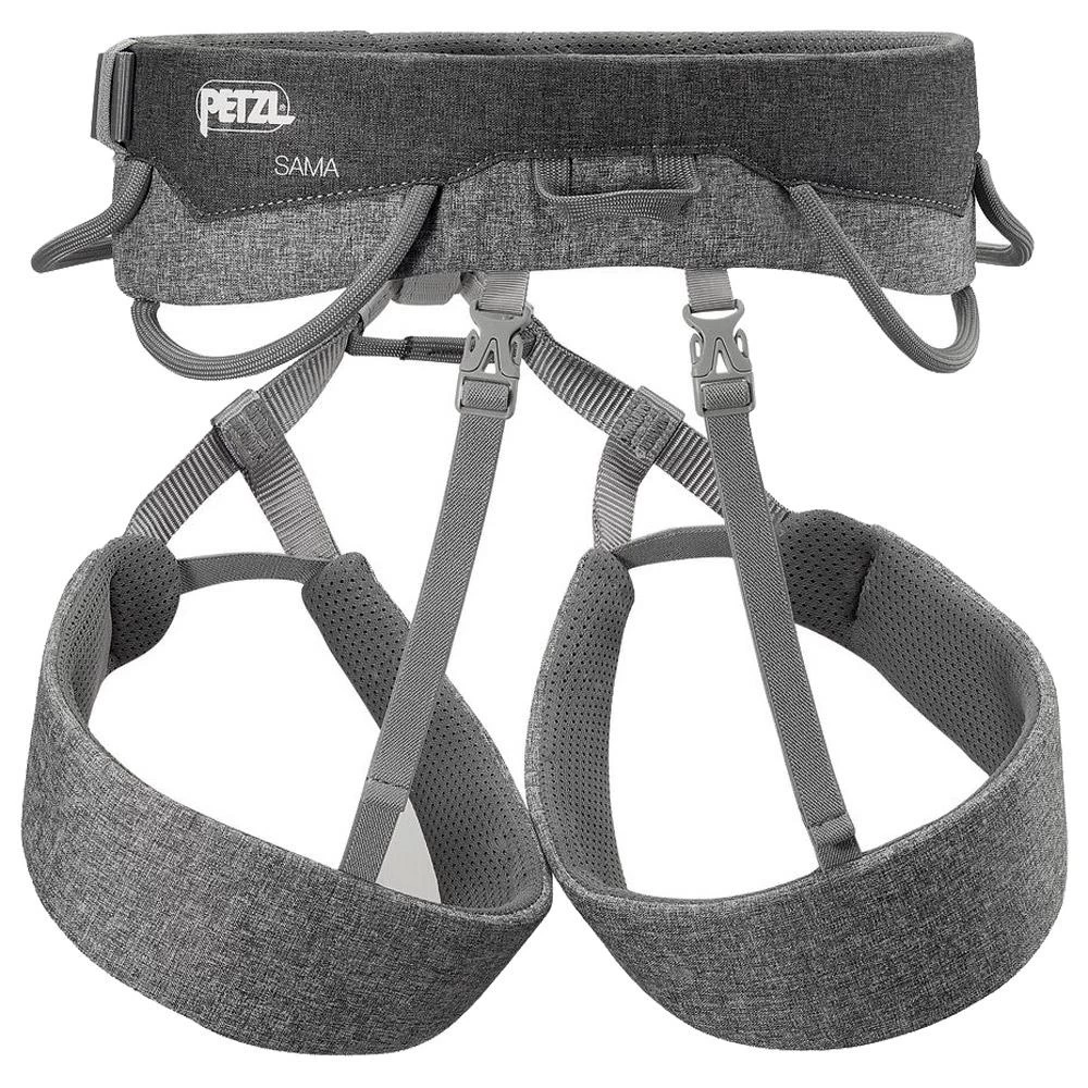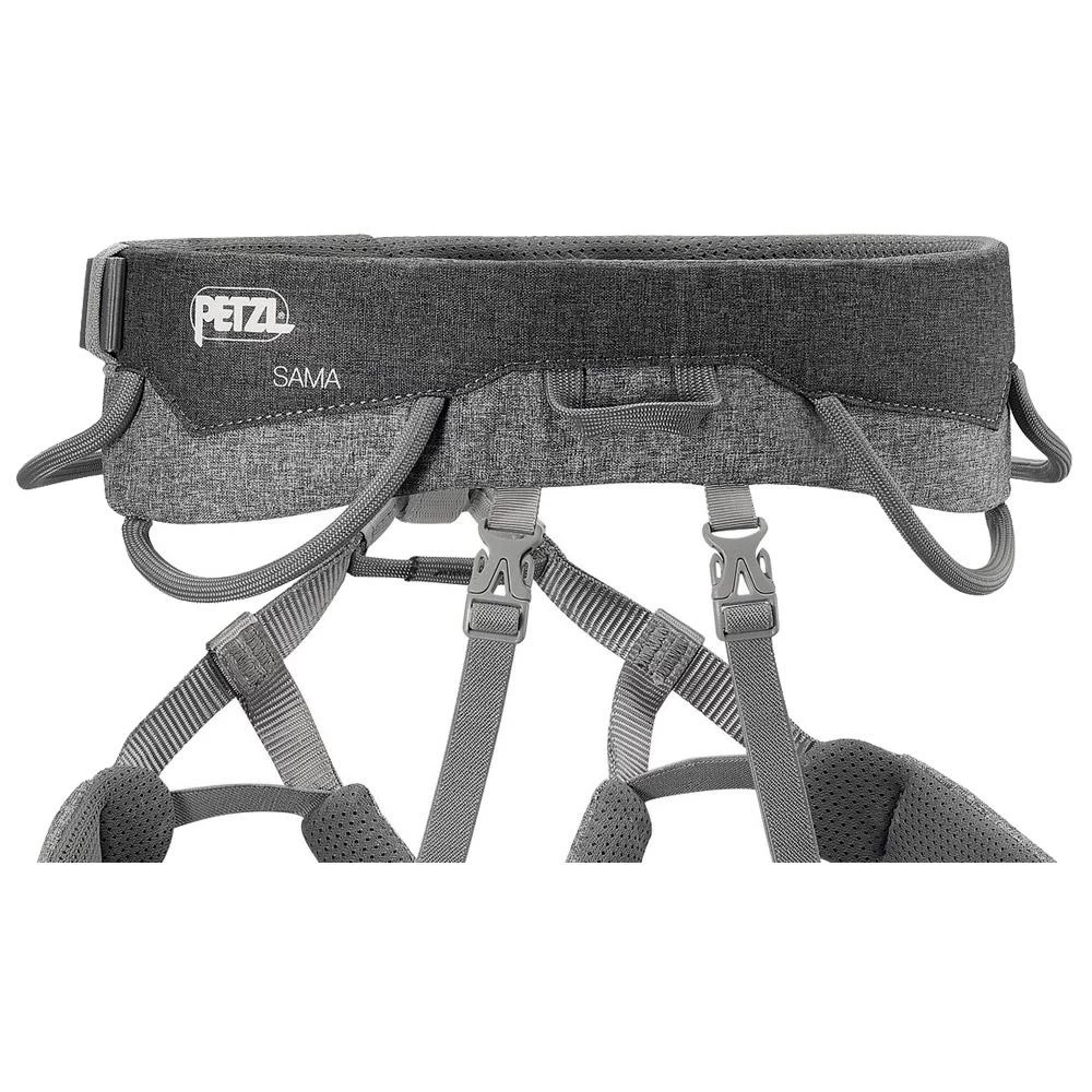 El Petzl Sama es un arnés ligero y cómodo de llevar. El cinturón está trabajado en la parte delantera para tener la máxima movilidad, pero sigue siendo grueso en la parte trasera para ser ultra cómodo. Tiene trabillas elásticas para las piernas que se mantienen ceñidas y cintura ajustable con hebilla. Está equipado con cuatro porta herramientas, dos rígidos y dos flexibles, así como un anillo para la bolsa de magnesio.
