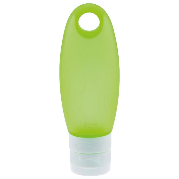 La botella de silicona Rubytec Splash de 98 ml tiene un frasco de silicona flexible y un tapón de rosca con cierre hermético. Es perfecto para guardar tus productos de higiene, como el jabón líquido, cuando estás en un vivac.