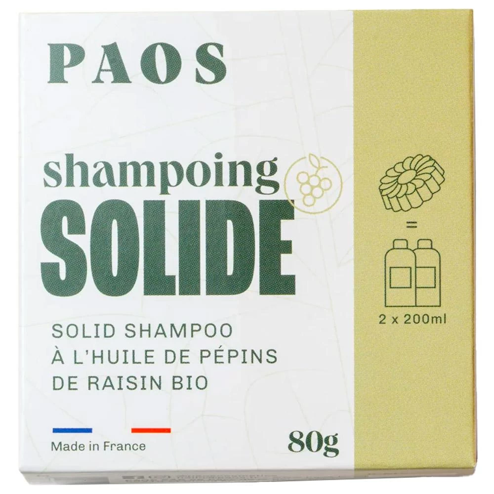 Un auténtico concentrado de beneficios para tu cabello, este champú sólido está fabricado por Paos, una marca francesa reconocida por la calidad de sus productos respetuosos con el medio ambiente. Está elaborado con ingredientes naturales que actúan conjuntamente para limpiar, hidratar y nutrir tu cabello, preservando su equilibrio natural. Con esta fórmula sólida, aportas tu granito de arena al planeta reduciendo el consumo de plástico. El champú Paos equivale a 2 botellas de 250 ml.