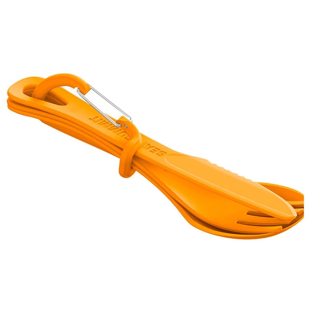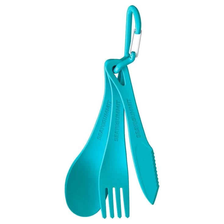 El juego de cubiertos Delta incluye un tenedor, un cuchillo y una cuchara. Los tres son ligeros, duraderos e irrompibles, y no retienen ningún sabor ni olor. La base patentada de Protex® proporciona un buen aislamiento térmico y permite sujetar el recipiente con facilidad, incluso cuando está lleno de agua hirviendo. Los cubiertos son aptos para el microondas y el lavavajillas. Ultra compactos, los tres cubiertos encajan entre sí para ahorrar espacio. Viene con un mosquetón para sujetar los utensilios. Peso : 43g.