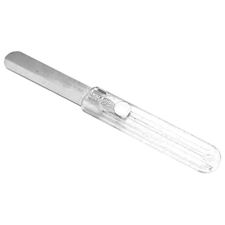 El Hippus es un cuchillo pequeño de la marca Swiss Advance ideal para picnics, excursiones o incluso en casa. Muy ligero, cuenta con una hoja de acero inoxidable con punta redonda para mayor seguridad en particular. También es práctico ya que esta hoja es retráctil en su mango de plástico para ocupar menos espacio en sus pertenencias.