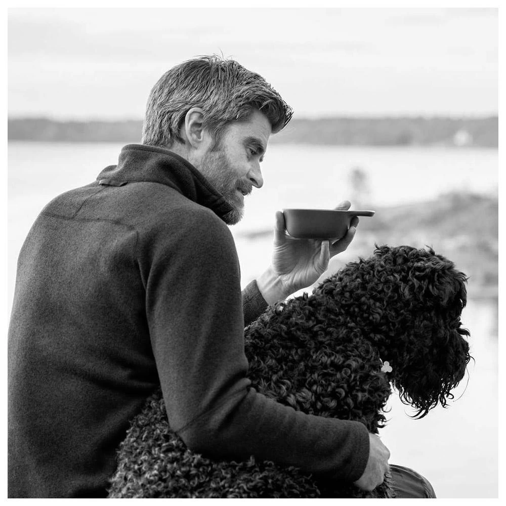 Las distintas piezas son apilables, unidas por una correa. Todo está fabricado con un material de origen biológico libre de BPA que proviene del almidón de maíz europeo libre de transgénicos. Todos los utensilios son aptos para microondas y lavavajillas. Ya sea para preparar una comida en el bosque, repostar durante una excursión o almorzar con estilo en la terraza, el kit de comida para exteriores es tan compacto como práctico.