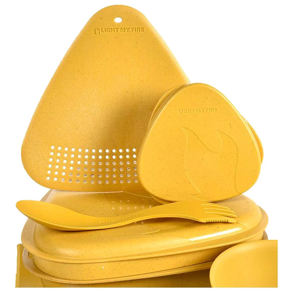 Súper versátil, el Kit de comedor Mealkit de exterior Light My Fire está compuesto por 8 piezas de diseño escandinavo atemporal. Algunas realizan varias funciones. Todas proporcionan lo que necesitas para preparar, cocinar y disfrutar de tu comida en el outdoor. Recipientes para llevar la comida, tabla de cortar/escurridor, plato, cuenco, cubiertos y también Kåsa sueca, de eso se compone este kit, ideal para todos los amantes del vivac.
