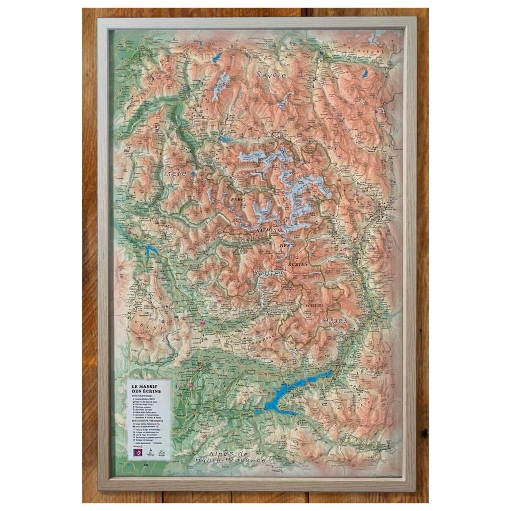 Los mapas 3DMAP se fabrican en Francia y aportan una nueva dimensión a la cartografía, tanto en sentido literal como figurado. Gracias a un software de procesamiento 3D desarrollado específicamente para estos mapas, se consigue un nivel de acabado excepcional que hace que estos mapas sean tan bellos como detallados. Aquí, la atención se centra en el Macizo de los Ecrins. Encuentre Bourg d’Oisans, La Meije, Gap o Briançon, descubra las cumbres de esta región, pero también los lugares turísticos más bellos, los GR, los lugares de despegue o aterrizaje de parapente y mucho más.