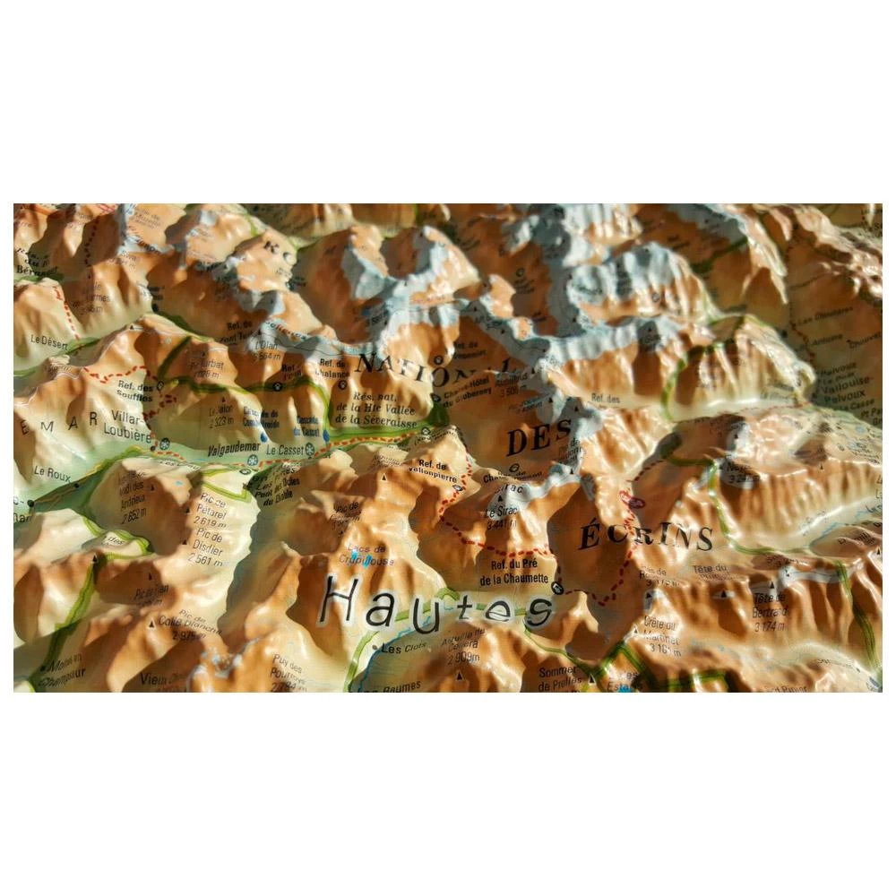 Los mapas 3DMAP se fabrican en Francia y aportan una nueva dimensión a la cartografía, tanto en sentido literal como figurado. Gracias a un software de procesamiento 3D desarrollado específicamente para estos mapas, se consigue un nivel de acabado excepcional que hace que estos mapas sean tan bellos como detallados. Aquí, la atención se centra en el Macizo de los Ecrins. Encuentre Bourg d’Oisans, La Meije, Gap o Briançon, descubra las cumbres de esta región, pero también los lugares turísticos más bellos, los GR, los lugares de despegue o aterrizaje de parapente y mucho más.