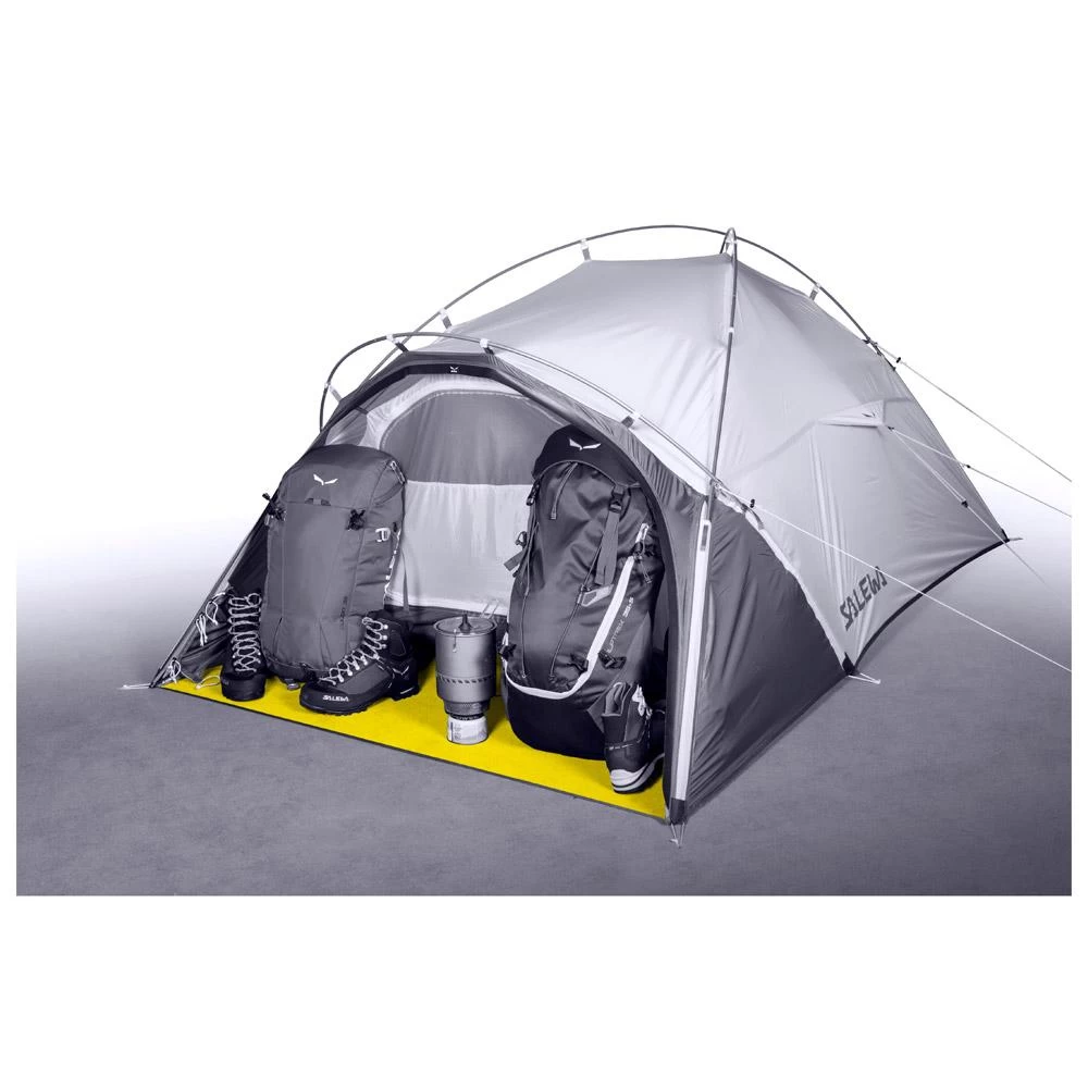 Ideal para acampar al aire libre en buenas condiciones, el modelo Salewa Litetrek II es una tienda para dos personas, diseñada para uso en tres estaciones. Ligero y compacto, también tiene un revestimiento de poliuretano impermeable en el doble techo y el suelo para protegerte de los elementos y resiste vientos de hasta 90 km/h. La superficie interior es de 2,52 m² con una altura de un metro y un ábside de 0,56 m² permite guardar enseres y cocinar. Un sistema de ventilación asegura una buena circulación del aire y la puerta con mosquitera evita la entrada de insectos. Se incluye una bolsa de almacenamiento con este modelo, así como un kit de reparación.